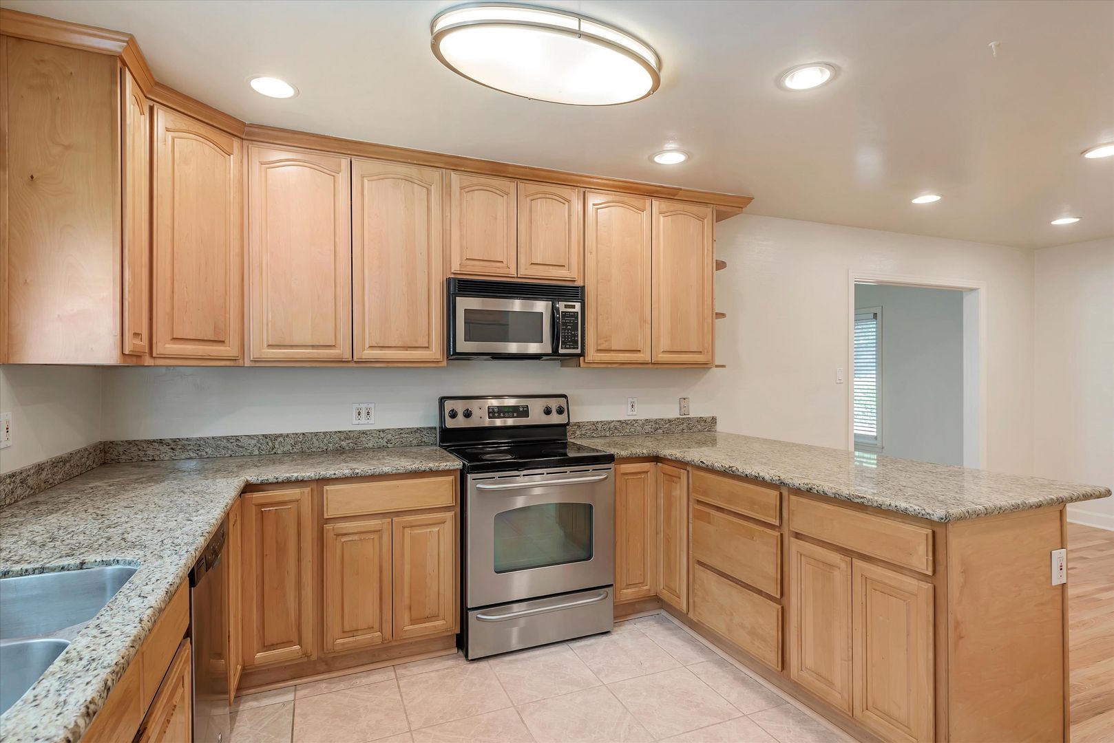 Kitchen with granite counters and stainless steel appliances
