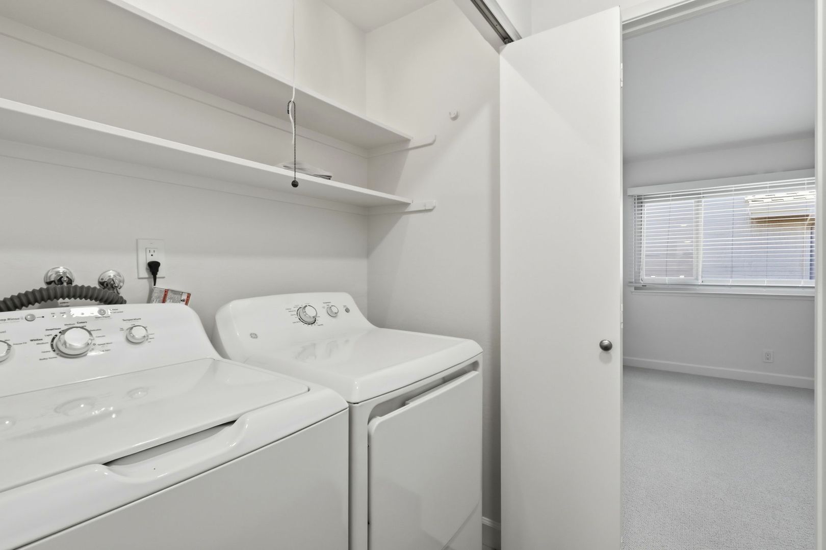 Indoor laundry area with new washer and dryer