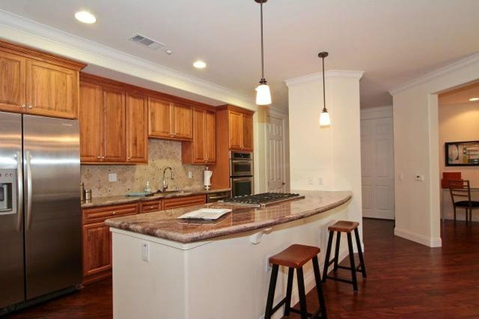This 2BR/2BA, 1,676 sq. ft. unit is in a secure building and comes with two underground parking spaces and extra storage area. This unit is on the 2nd floor overlooking an open courtyard, with a large balcony accessible from the master BR and living room. Other amenities include: Open single-story floor plan; High ceilings; Hardwood floors (and carpeted bedrooms); Chef’s kitchen with stainless steel oven, microwave, dishwasher, cooktop and fridge; Granite slab island w/ breakfast bar; Private suite retreat w/ large bathroom (dual sinks, private commode, spa tub and separate shower) & large walk-in closets (large closet in second BR too!); In-unit W/ D, Central Heat and Air; Large pantry; Gas fireplace.