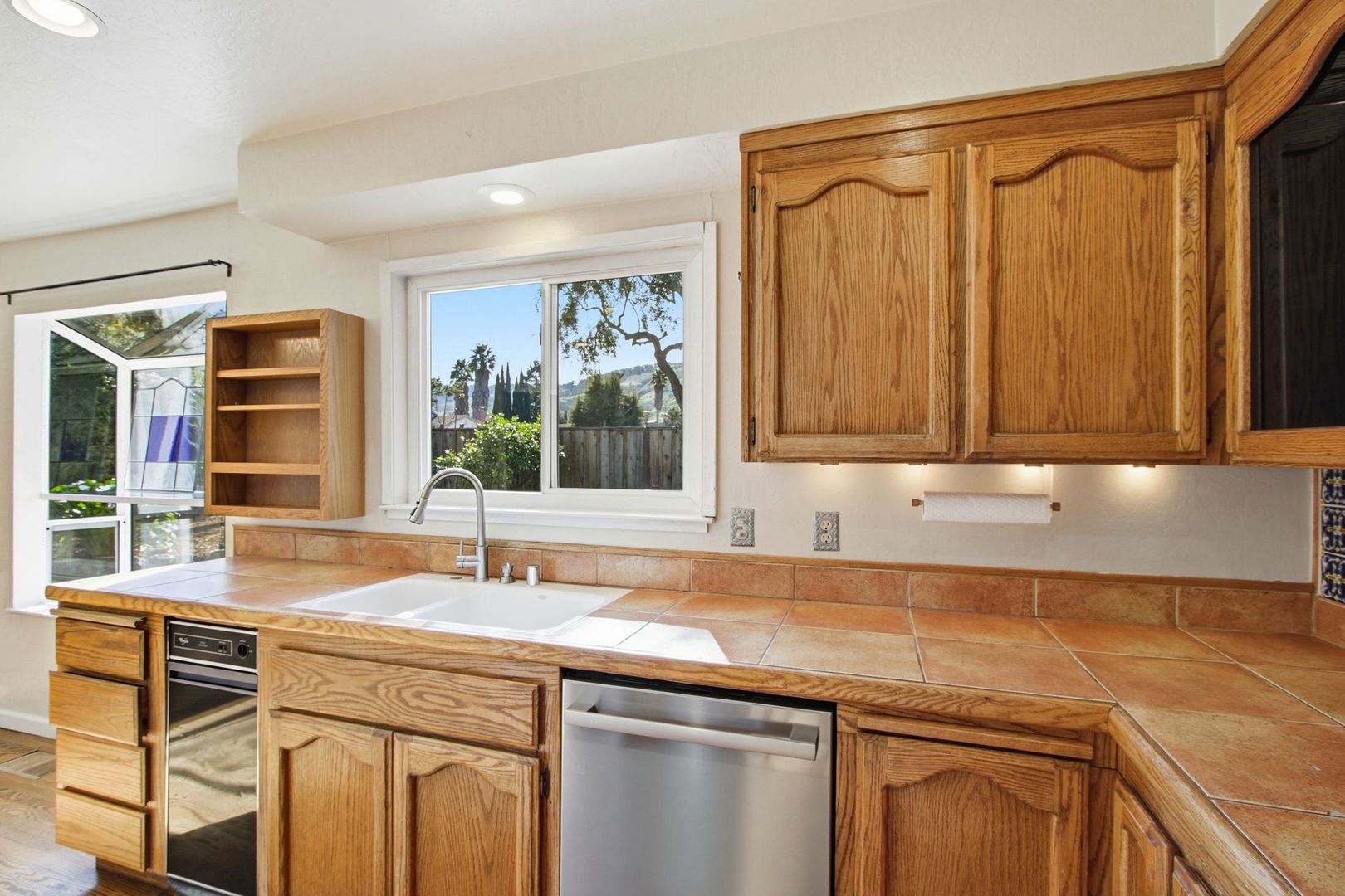 Windows: Double-pane windows with a bay window at kitchen breakfast nook.